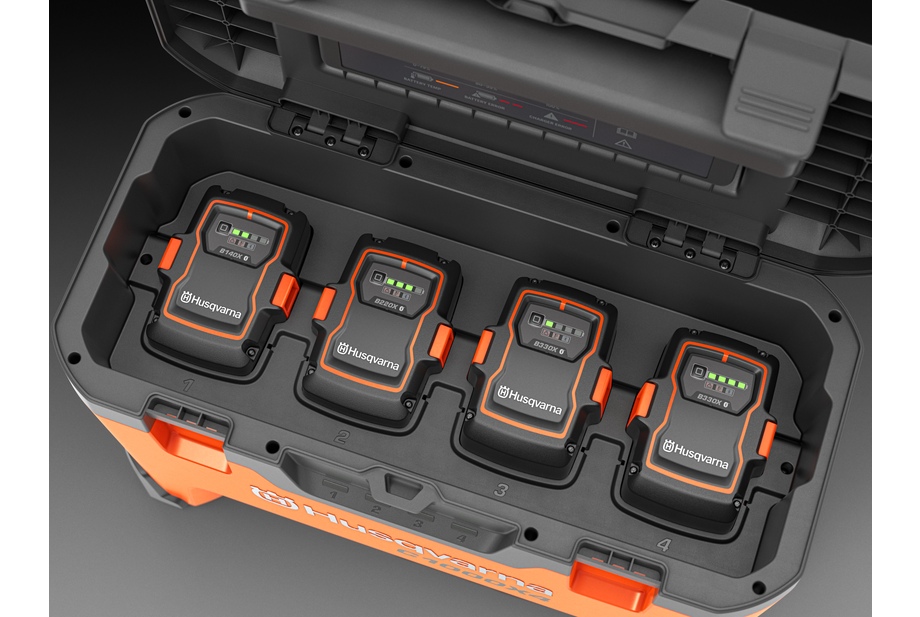 Husqvarna 40-1000X4 többrekeszes akkumulátortöltő a töltéshez bárhol, ahol csak akarja – a műhelyben, a munkahelyen, autójában vagy utánfutójában. A 40-C1000X4 akár négy Husqvarna BLi-X 36V akkumulátor egyidejű nagy teljesítményű töltését teszi lehetővé egy egységben, és az intelligens terheléselosztásnak köszönhetően minden akkumulátor gyorsan és hatékonyan töltődik. Megfelel az IPX4 vízállósági besorolásnak, bármilyen időjárási körülmények között használható. Töltő, szállítódoboz és tároló – a többrekeszes töltők minden az egyben elrendezést kínálják az akkumulátorok időtakarékos kezeléséhez. Az elemeket nem tartalmazza.