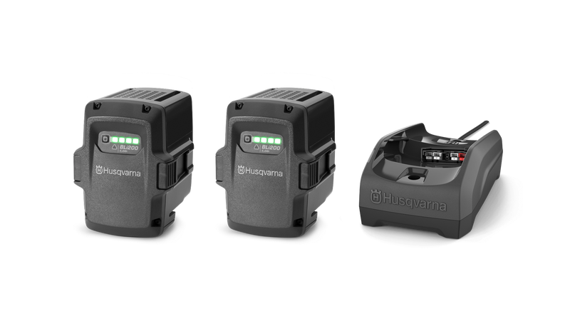 A Husqvarna akkumulátor és töltő készlet 2 db BLi200 akkumulátort és 1 db 40-C80 töltőt tartalmaz.