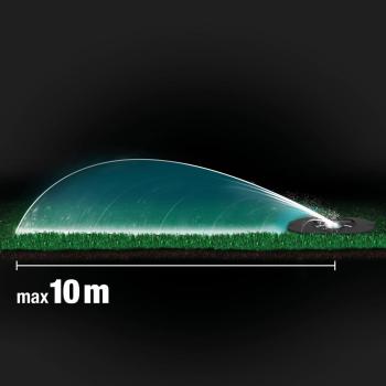 Az AquaPrecise kontúrspecifikus öntözést kínál 320 m²-ig. A Contour Sprinkler fej akár 10 m-es szórási távolságot biztosít egyenletes csapadék mellett, precíz vízfelvételt biztosítva. Alacsony permetezési magassága azt jelenti, hogy biztos lehet benne, hogy a szél nem érinti, és nem pazarolja a vizet. A rendszer lehetővé teszi a rugalmas formák egyenletes öntözését egyedileg programozott kontúrpontok segítségével.