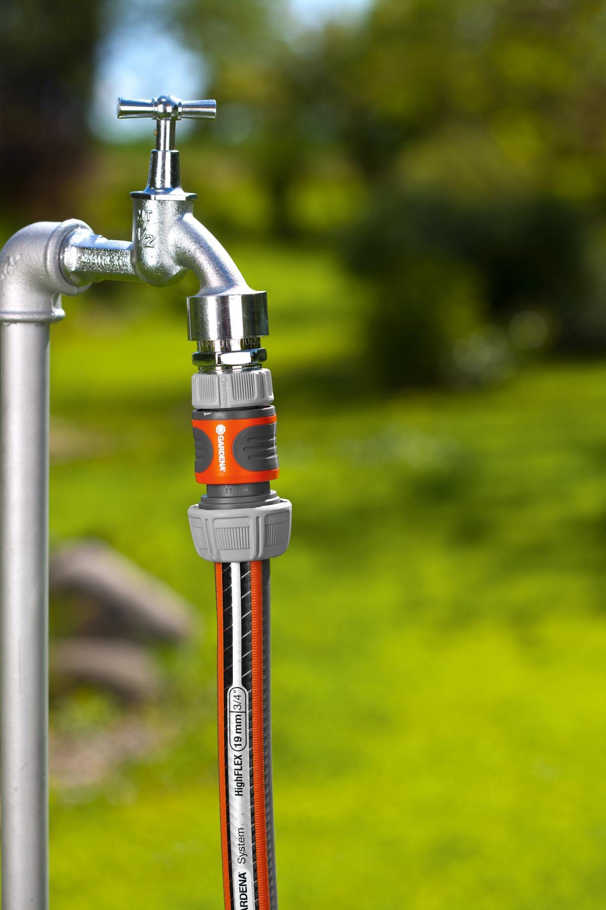 A GARDENA Water Stop egy praktikus tömlőcsatlakozó innovatív funkciókkal, amelyek segítenek a kert öntözésében. Az adapter a tömlő végére van rögzítve, majd minden alkalommal működésbe lép, amikor öntözőtartozékot szeretne cserélni. Az automatikus vízleállítás funkció azonnal leállítja a víz áramlását, és csak akkor indul újra, ha új öntözési tartozékot, például szórófejet csatlakoztat a tömlőhöz. Ezzel megkíméli Önt a bosszantó úttól a csaphoz, mert nem kell elzárnia a csapot a Water Stop használata közben.