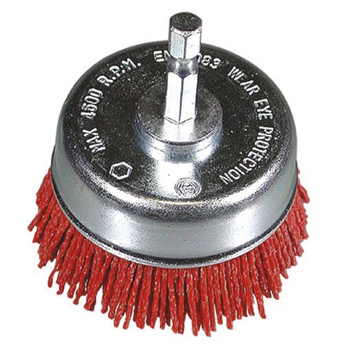 | Megnevezés | Száras fazékkefe nejlon huzalszál korund csiszolóanyaggal, fúrógépekhez, hatlapú befogással |